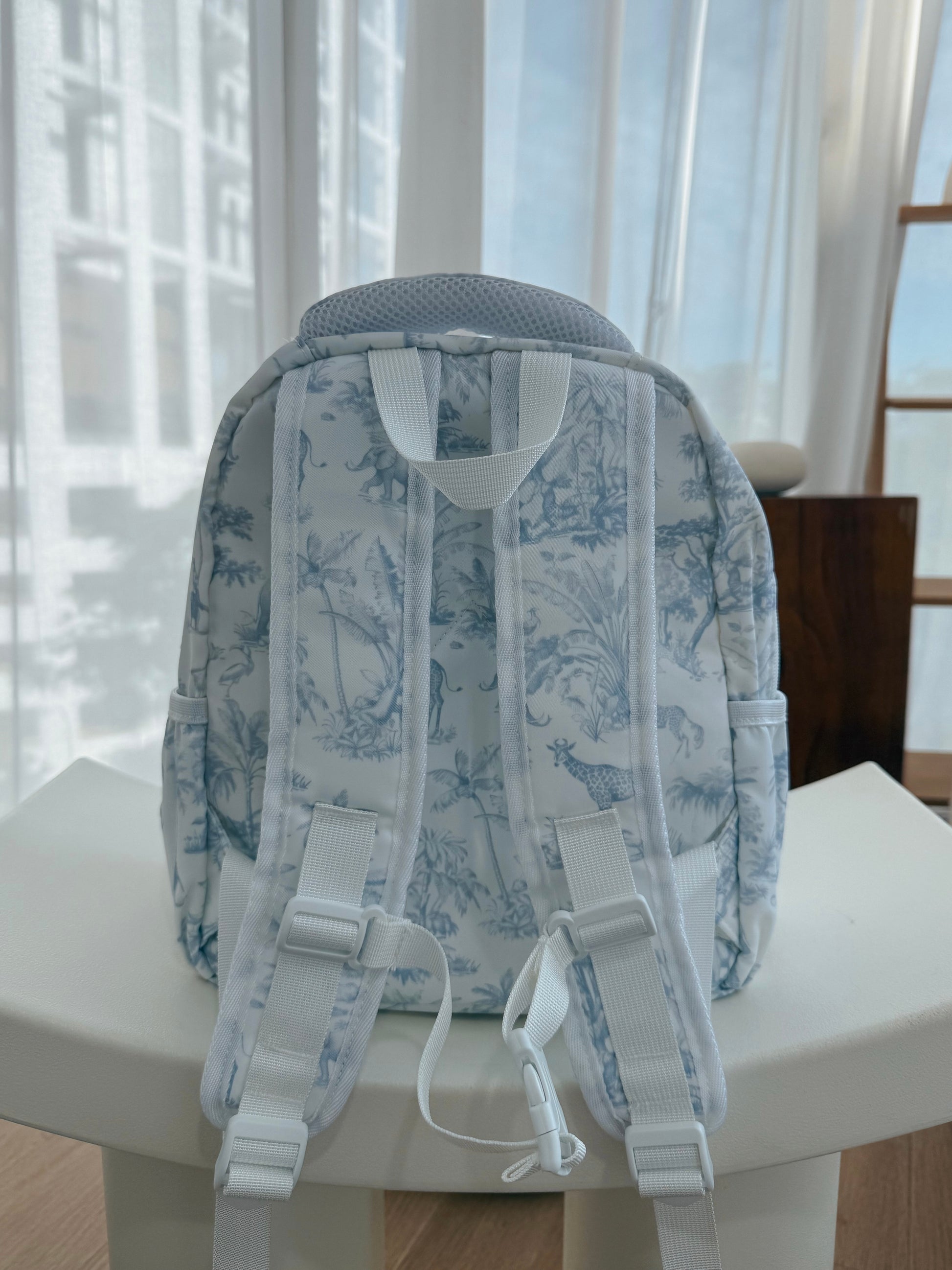 Adventure meets elegance with the Madeinlovekins School Backpack, thoughtfully designed for little explorers and style-conscious parents. Featuring our Safari Tales Toile print, this charming backpack brings a whimsical world of safari animals to life through delicate, illustrations in a timeless toile design.