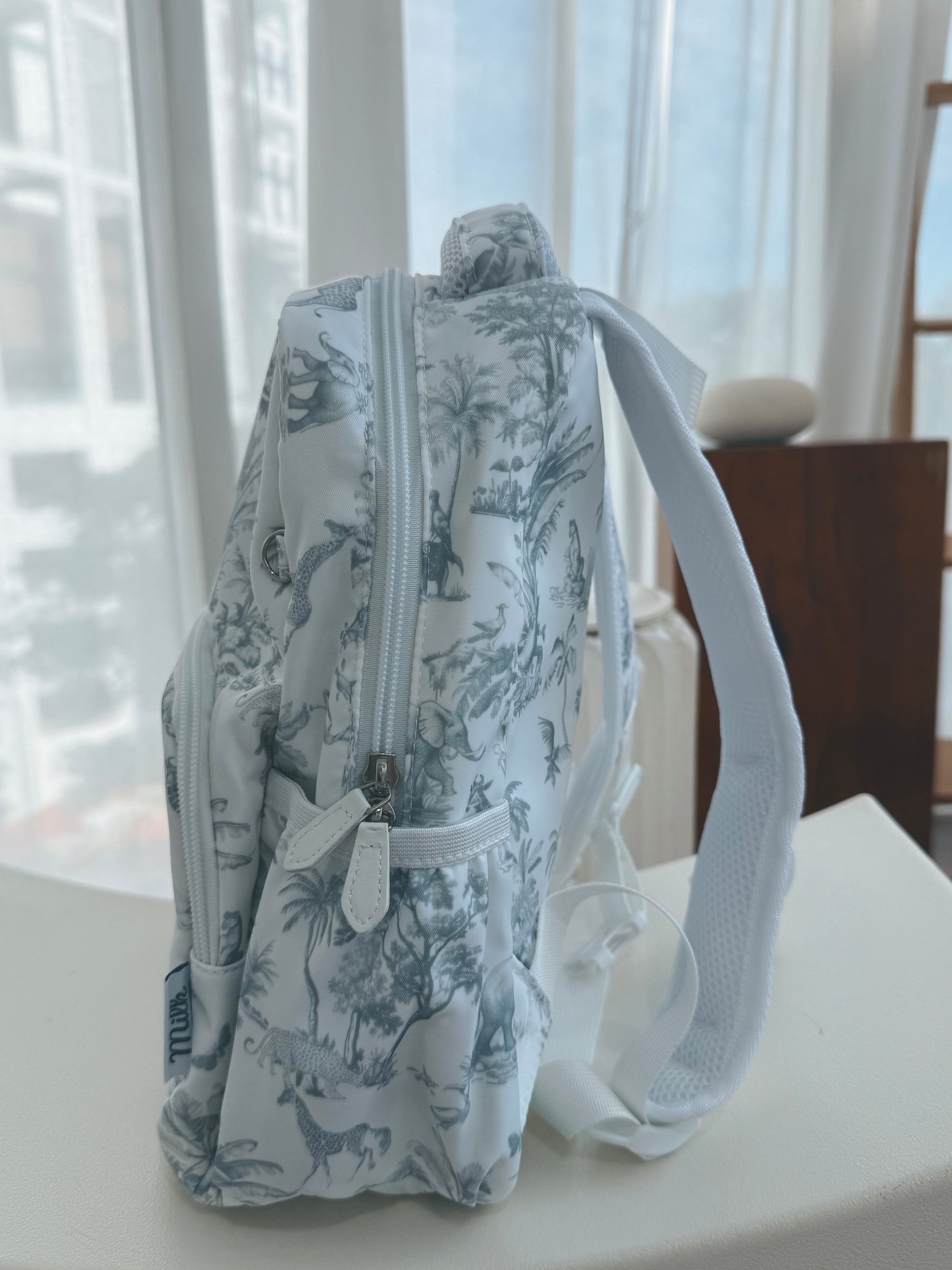 Adventure meets elegance with the Madeinlovekins School Backpack, thoughtfully designed for little explorers and style-conscious parents. Featuring our Safari Tales Toile print, this charming backpack brings a whimsical world of safari animals to life through delicate, illustrations in a timeless toile design.